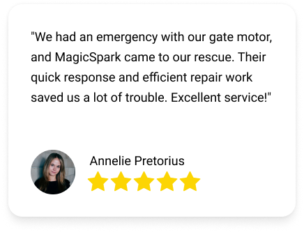 Magic Spark offers comprehensive electrical solutions including new installations, maintenance, repairs, and certifications. From gate motors and stoves to solar services and generator installations, we ensure your electrical needs are met with expertise and efficiency.